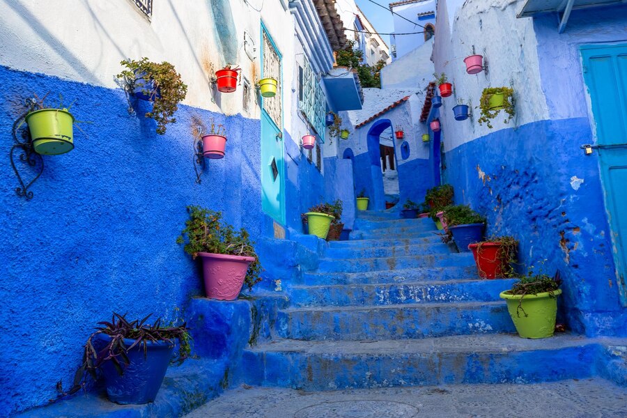 Known as the “Blue Pearl” of Morocco, Chefchaouen is famous for its vibrant blue-painted buildings and narrow, winding streets. Located in the Rif Mountains, this city offers a blend of Moroccan culture and Spanish influence. Explore its colorful medina, enjoy traditional Moroccan cuisine, and soak in the breathtaking mountain views.